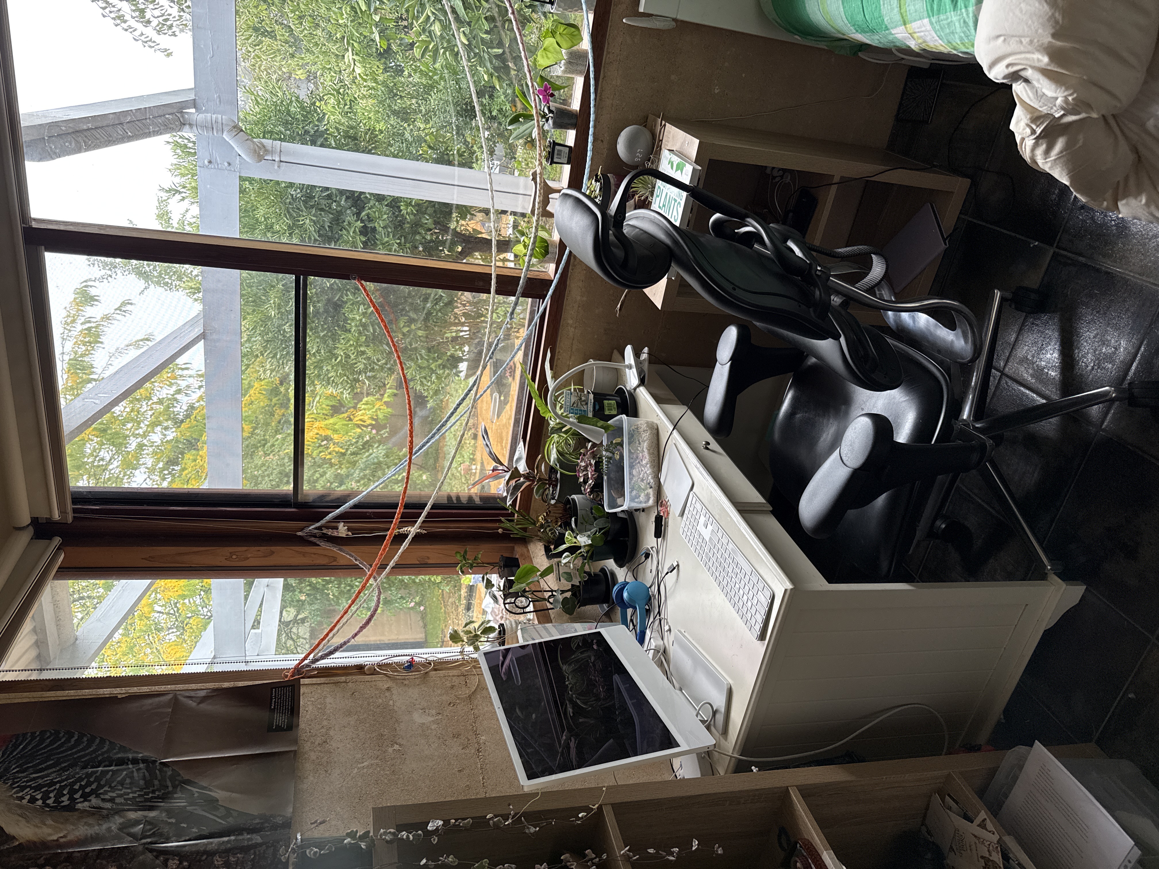 Now we have the MIL staying for 3 weeks and I’ve moved into to 9yo’s bedroom - complete with an array of indoor plants to share the desk with - which was originally an office - as there’s no Ethernet, or desk, in our bedroom.